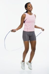 As one of the highest-calorie-burning exercises, jumping rope burns about 11 calories per minute. Varying speed and increasing intensity while jumping can burn up to 20 calories per minute. It is estimated that a 150-lb. person jumping rope at a moderate level (140 revolutions per minute) burns 1,022 calories in 60 minutes (try 15-minute intervals throughout the day). Jumping rope at a fast pace (180 to 200 revolutions per minute) burns around 1,020 calories in 50 minutes.